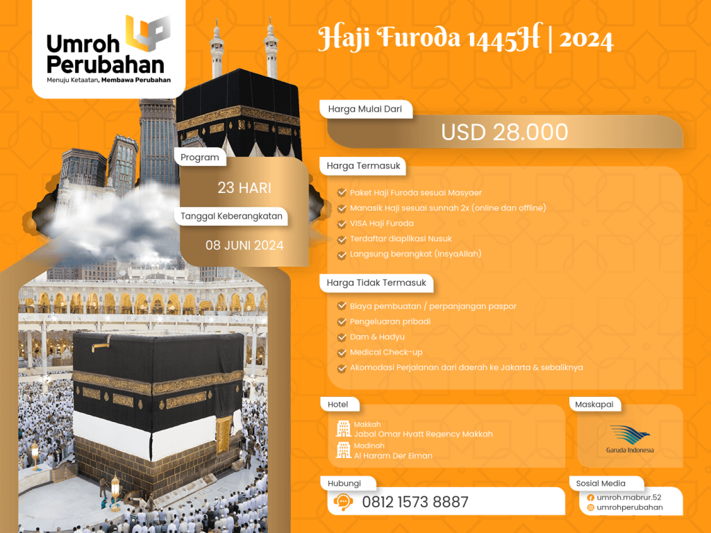 - Harga Paket mengikuti kurs USD saat pendaftaran dan pelunasan