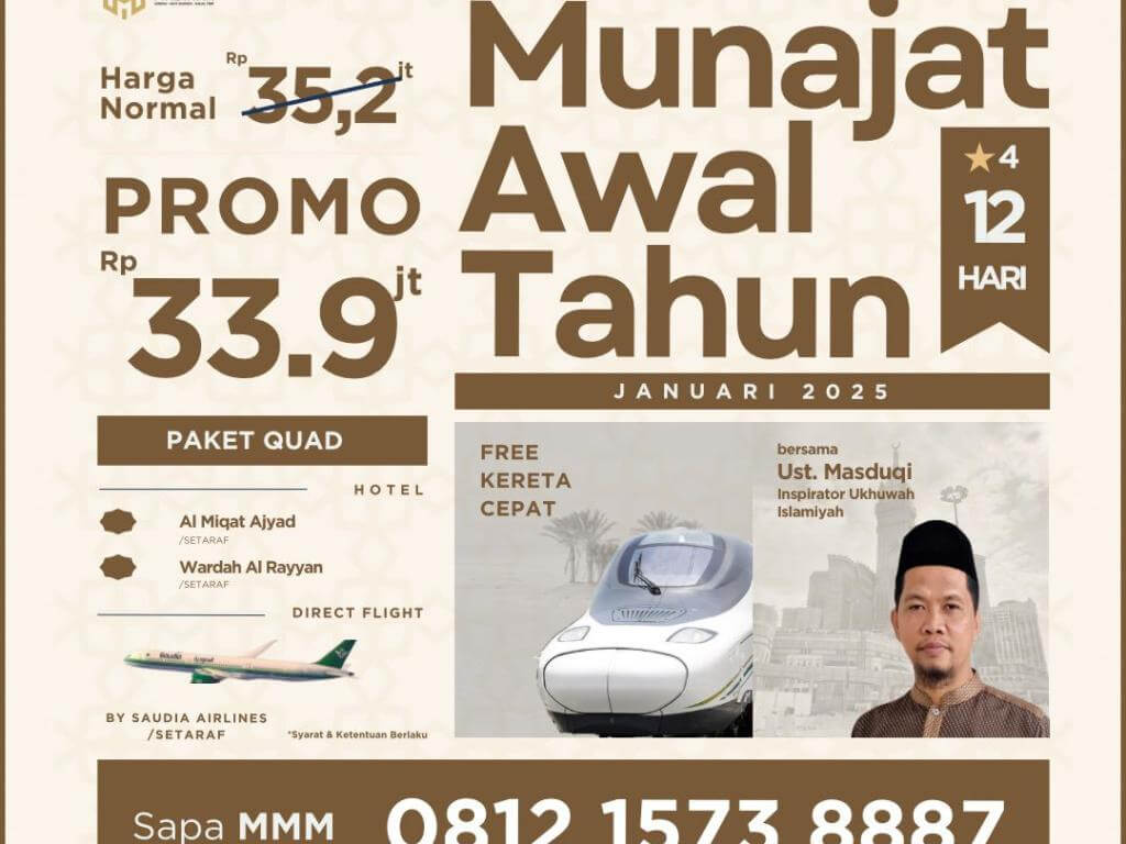 Jangan lewatkan kesempatan berharga ini! Dapatkan paket Umroh Munajat Awal Tahun bersama MMM Tour, biro umroh Weleri yang selalu siap memberikan pelayanan terbaik untuk Anda.