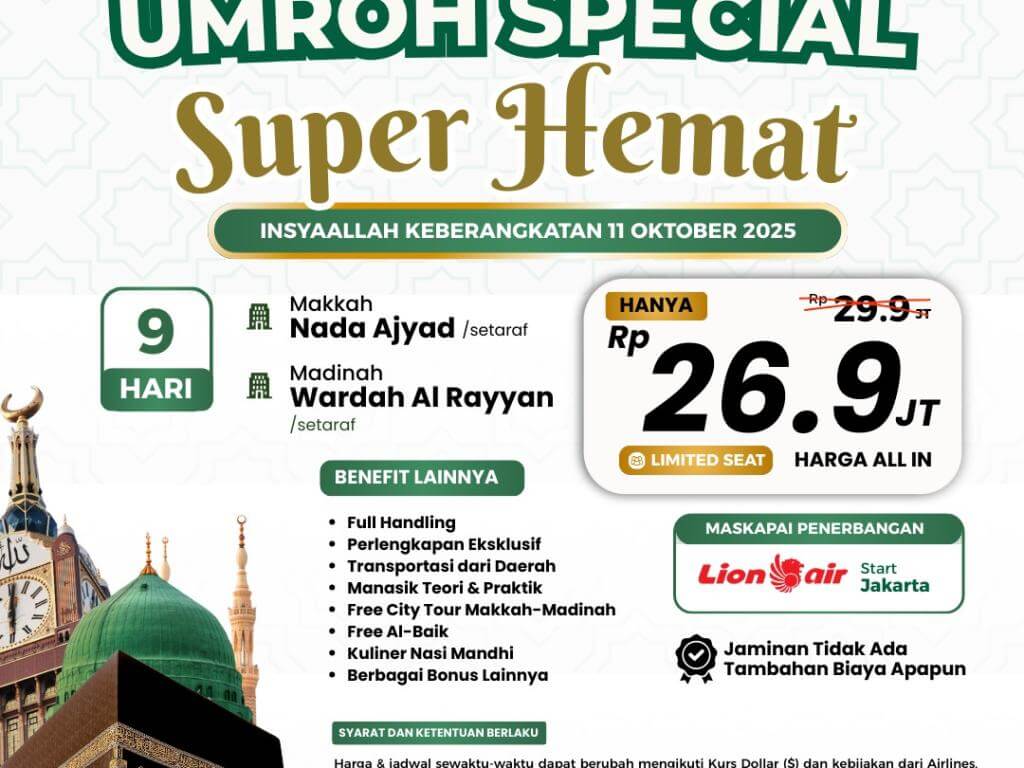 - Harga sewaktu-waktu dapat berubah menyesuaikan kebijakan pemerintah Indonesia & kebijakan dari Saudi Arabia dan Kurs Dollar saat pelunasan