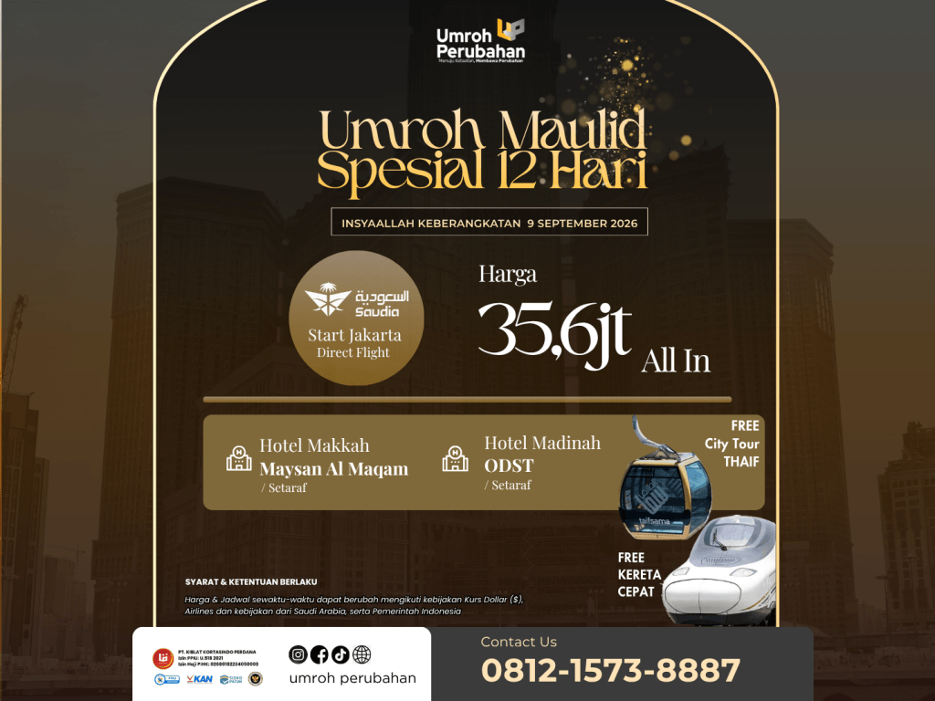 ➢ Biaya paket (Harga) belum termasuk biaya pembuatan paspor, suntik vaksin meningitis, suntik vaksin covid-19, biaya over bagasi, biasa test PCR dan karantina (bila diperlukan)